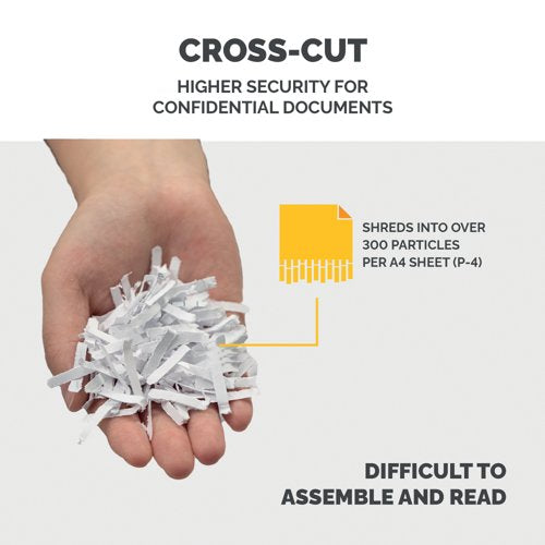 Robust Shredding Capability: Shreds up to 22 sheets per pass into 407 cross-cut particles (5/32” x 1-1/2”), providing a Security Level P-4 for ultimate protection against identity theft.