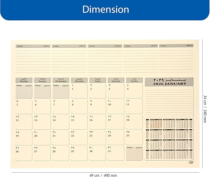 Tags: Arabic-English calendar, bilingual desk refill, 2026 desk calendar, ivory desk refill, 490x340 mm calendar, Arabic English planner, desk calendar refill, calendar refill 2026, bilingual planner refill, office desk accessory, Arabic English date planner, 2026 calendar refill, Ivory desk calendar, large desk refill