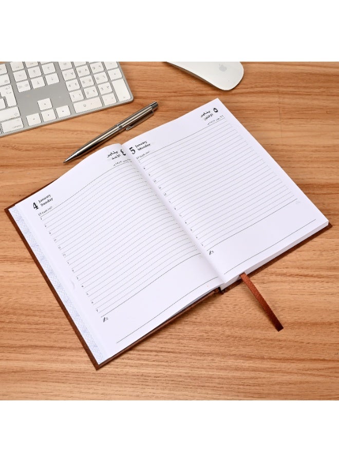 Alt text: FIS Brown A5 Arabic-English Hard Cover Vinyl 2026 Diary