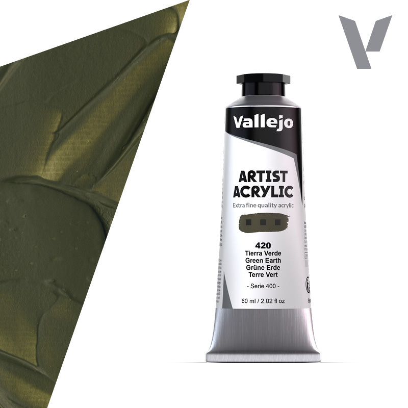 Elevate your artwork with the Vallejo Acrylic Artist 420: 60 ml. Green Earth and experience a world of color like never before!