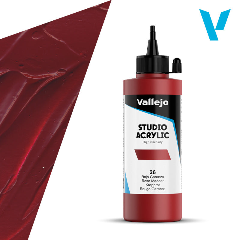 Elevate your art with the VALLEJO ACRYLIC STUDIO 26: 200 ML. ROSE MADDER, where quality meets affordability for every artist.