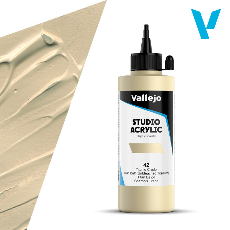 Elevate your artistic expression with VALLEJO ACRYLIC STUDIO 42: 200 ML. TITAN BUFF (UNBLEACHED TITANIUM) and experience the perfect balance of quality and affordability!