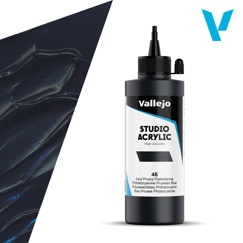 Transform your artwork with the unmatched quality and versatility of VALLEJO ACRYLIC STUDIO 46: 200 ML. PRUSSIAN BLUE PHTHALO. Whether you’re creating intricate details or bold strokes, let this paint elevate your creative expression!