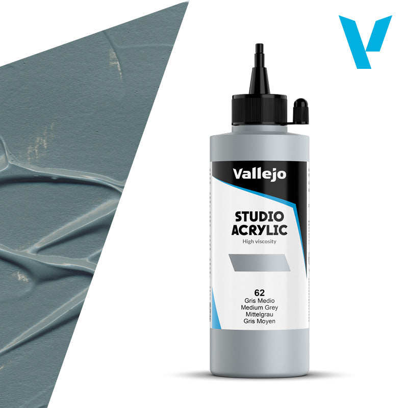 Elevate your artistic journey with VALLEJO ACRYLIC STUDIO 62: 200 ML. MEDIUM GREY, where quality meets affordability!