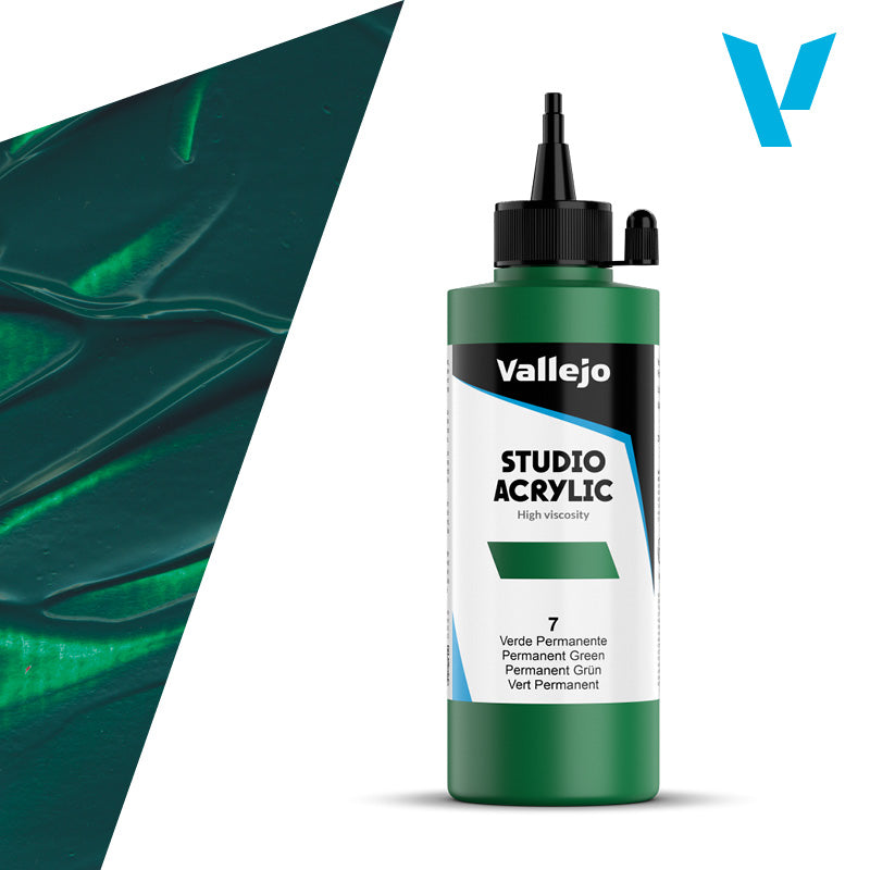 Unleash your creativity with VALLEJO ACRYLIC STUDIO 7 in Permanent Green, a premium acrylic paint designed for artists who demand excellence. This 200 ml container is packed with features that will elevate your artwork to the next level.